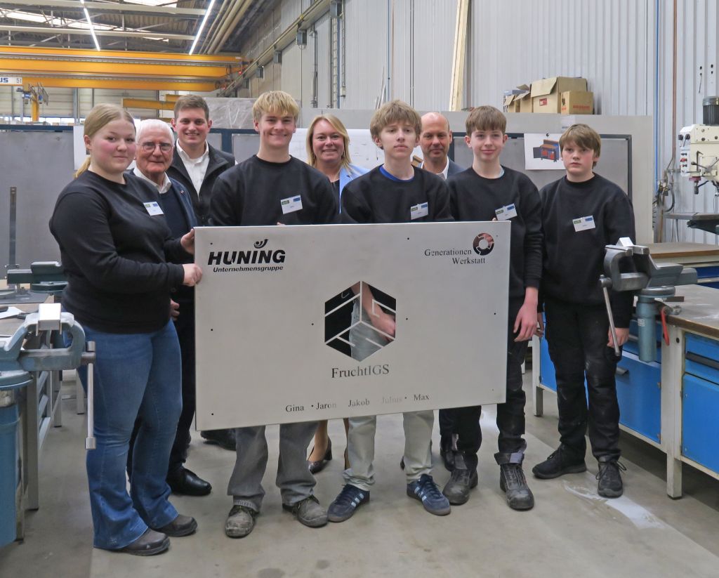 Am Dienstag, den 17.03.2026, informierte sich der Staatssekretär vom Kultusministerium aus Hannover über die "GenerationenWerkstatt" mit Schülern der IGS-Melle bei einem Besuch in der Firma Huning in Melle.