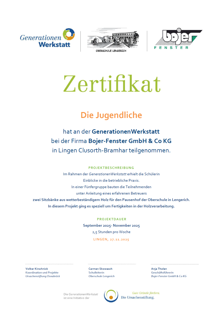 Im Rahmen der GenerationenWerkstatt erhielt die Schülerin Einblicke in die betriebliche Praxis.