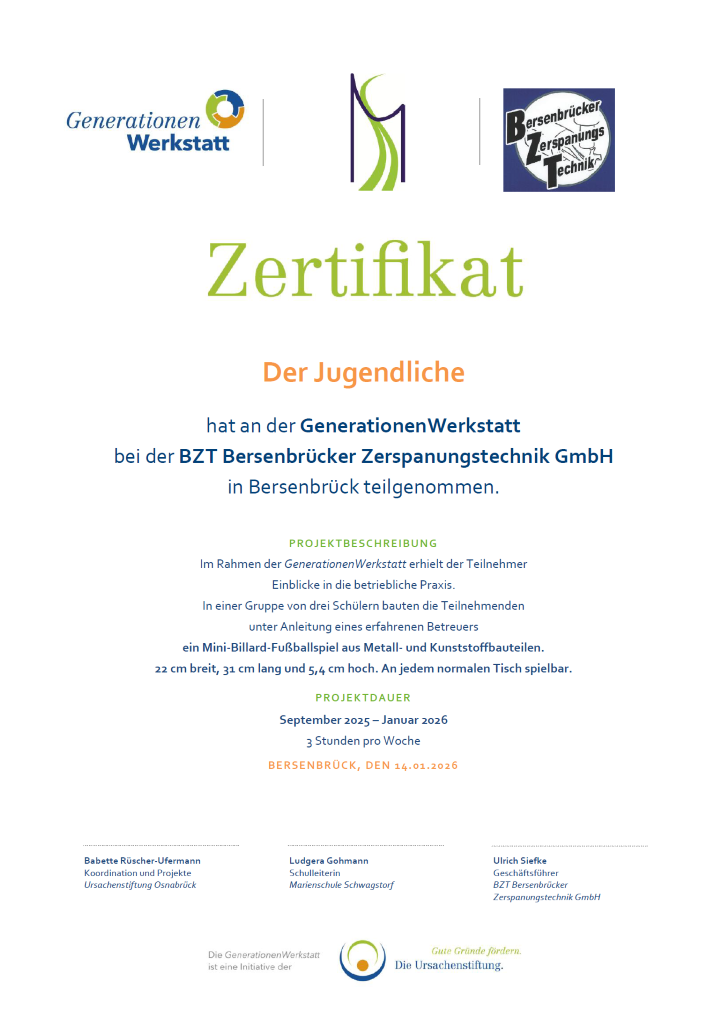 BZT Bersenbrück | Marienschule Schwagstorf | 14.01.2026