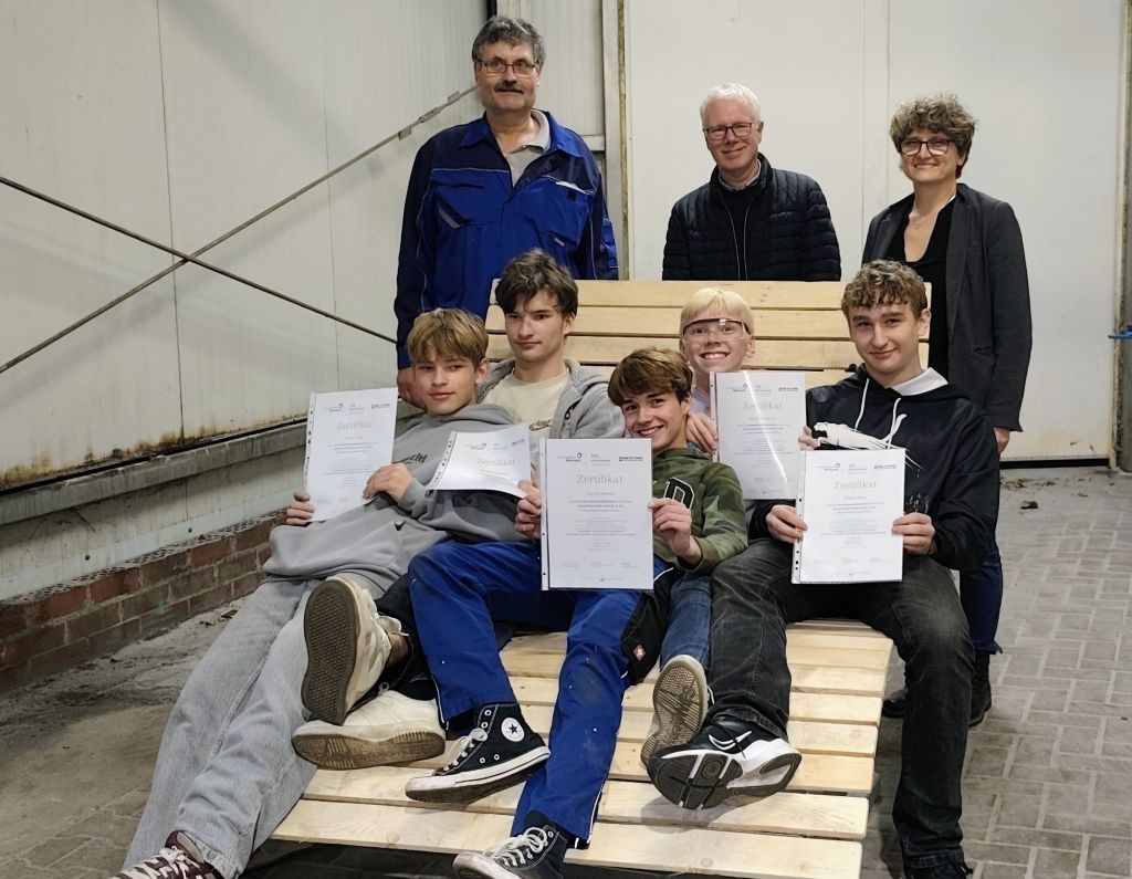 In einer Gruppe von fünf Schülern bauten die Teilnehmer unter Anleitung des erfahrenen Betreuers Josef Strohschnieder eine Relaxliege für den Pausenhof der IGS Moormerland.