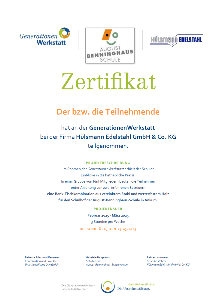 Zertifikat dieser GenerationenWerkstatt