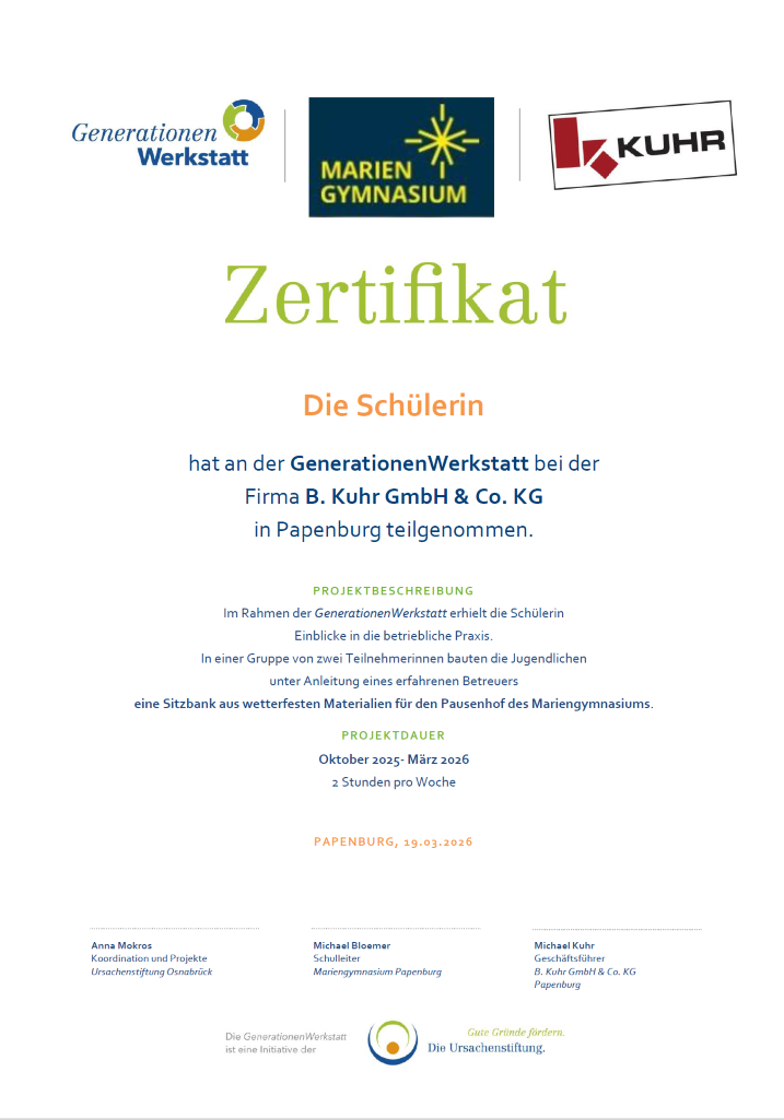 Im Rahmen der GenerationenWerkstatt erhielt die Schülerin Einblicke in die betriebliche Praxis.