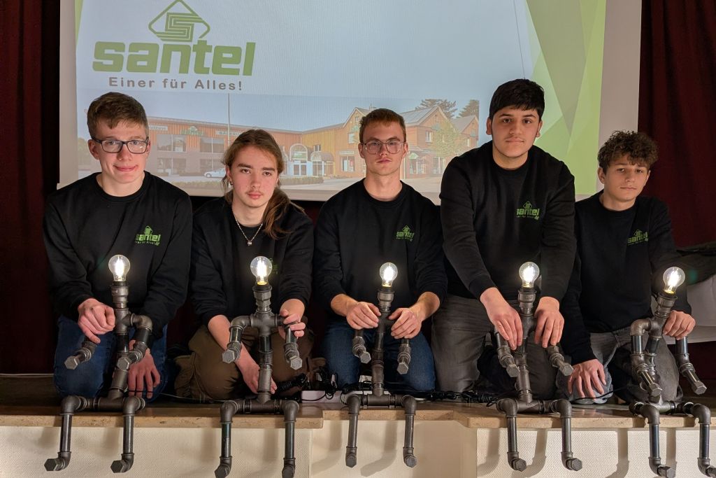 In einer Gruppe von fünf Schülern bauten die Teilnehmenden unter Anleitung eines erfahrenen Betreuers eine Kunstfigur aus originalen Werkteilen der Haustechnik, eine sogenannte „Klempner Birne“. Die Figur wurde elektrisch zu einer kunstvollen Leuchte aufgewertet.
