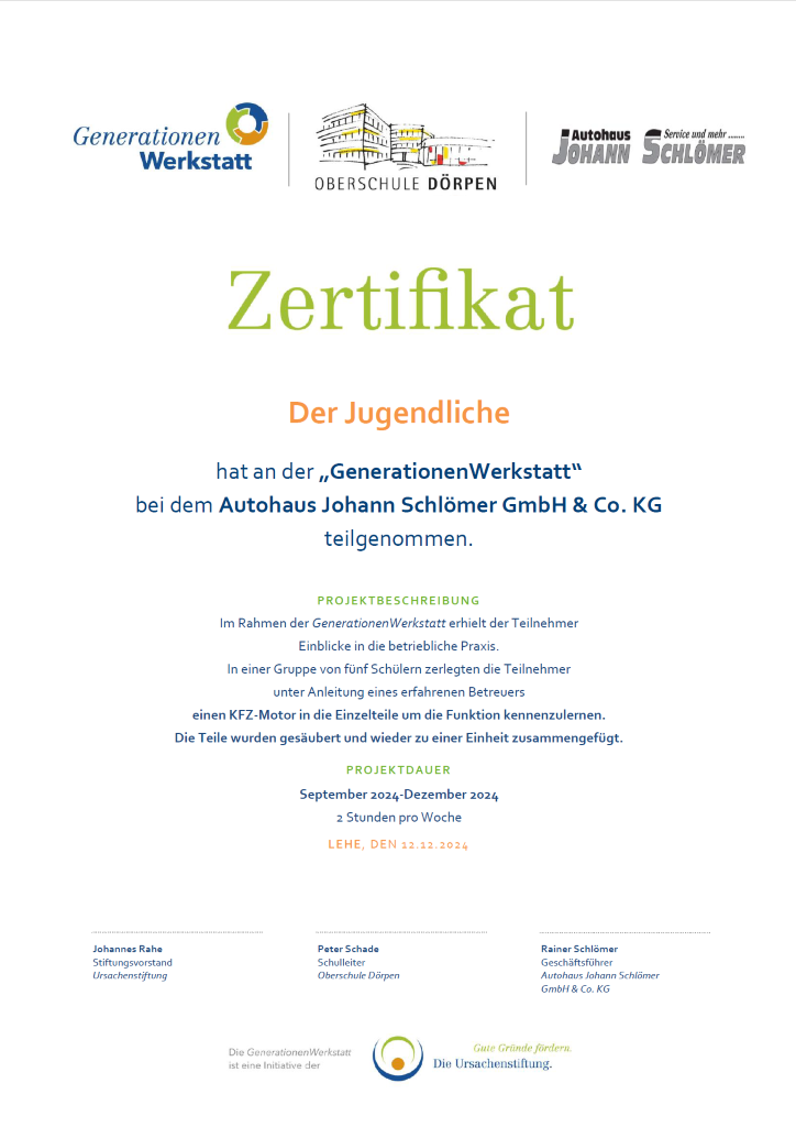 Zertifikat dieser GenerationenWerkstatt